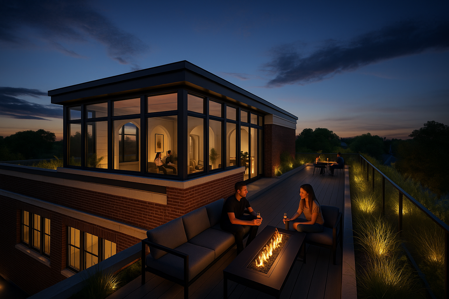 Adaptive reuse of a historic library, reimagined into a place of immersive experiences. Featuring artist and chef residencies, locally sourced and seasonal culinary offerings, curated exhibitions, and rooftop reflections.